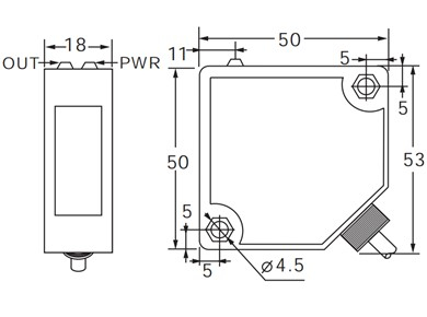 | Diameter | P50*50*18 | | Mounting | Through-beam | | Operating distance | 10m | | Housing material | PBT | | Operating voltage | 24-240VAC/VDC | | Mains Frequency | 50/60Hz | | Tolerance | ±10%Sn | | Hysteresis | 10% | | Emitting element | Infrared LED(880nm) | | Max.Output Current | 3A/30VAC,1A/220VAC | | Output | Relay | | Yellow LED | output indicator | | Green LED | power and status indicator | | Power Dissipation | <2.5VA | | Sensitivity Adjustment | Rotate 1 turn trimmer potentiometer | | Switching Frequency | 10Hz | | Response Time | 20ms | | On-delay operation | ≤300ms | | Operating Temperature | -10℃~60℃ | | Backlight luminance | >10.000Lux | | Protection Category | IP65 | | Output voltage | Emitter:AC/DC 2 Wire;Receiver:AC/DC 5 Wire