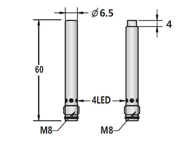 | Diameter | φ6.5*60 | | Mounting | Non-Shielded | | Operating distance | 4.0mm | | Housing material | stainless steel | | Operating voltage | 10-30VDC | | Ripple Voltage | <10% | | No-Load Current | <10mA | | Max.Load Current | 200mA | | Leakge Current | <0.01mA | | Voltage Drop | <1.5V | | Switching Frequency | 1KHZ | | Response Time | 0.2ms/0.2ms | | Switching Hysteresis | <15% (Sr) | | Repeat Accuracy | <1.0 (Sr) | | Protection Category | IP67 | | Operating Temperature | -25℃~70℃ | | Temperature Drift | <10% (Sr) | | Short-circuit Protection | YES | | Overload Current | 220mA | | Output indicator | LED | | Output | DC 3 Wire | | Connection type | M8 Connector | | Material Active Face | POM |