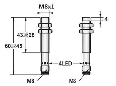 | Diameter | M8*45 | | Mounting | Shielded | | Operating distance | 1.0mm | | Housing material | Nickel plated brass | | Operating voltage | 10-30VDC | | Ripple Voltage | <10% | | No-Load Current | <10mA | | Max.Load Current | 200mA | | Leakge Current | <0.01mA | | Voltage Drop | <2.0VDC | | Switching Frequency | 100HZ | | Response Time | 1.5ms/1.5ms | | Switching Hysteresis | <15% (Sr) | | Repeat Accuracy | <5.0 (Sr) | | Protection Category | IP67 | | Operating Temperature | -25℃~70℃ | | Temperature Drift | <10% (Sr) | | Short-circuit Protection | YES | | Overload Current | 220mA | | Output indicator | LED | | Output | DC 3 Wire | | Connection type | M8 Connector | | Material Active Face | POM |