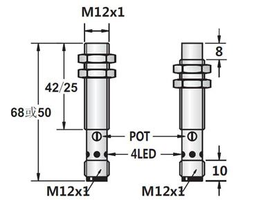 | Diameter | M12*42 | | Mounting | Non-Shielded | | Operating distance | 1~6.0mm adjustable | | Housing material | Nickel plated brass | | Operating voltage | 10-30VDC | | Ripple Voltage | <10% | | No-Load Current | <10mA | | Max.Load Current | 200mA | | Leakge Current | <0.01mA | | Voltage Drop | <2.0VDC | | Switching Frequency | 100HZ | | Response Time | 1.5ms/1.5ms | | Switching Hysteresis | <15% (Sr) | | Repeat Accuracy | <5.0 (Sr) | | Protection Category | IP67 | | Operating Temperature | -25℃~70℃ | | Temperature Drift | <10% (Sr) | | Short-circuit Protection | YES | | Overload Current | 220mA | | Output indicator | LED | | Output | DC 3 Wire | | Connection type | 2m PVC Cable | | Material Active Face | POM |