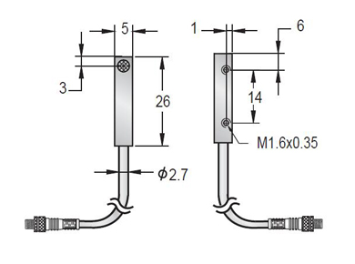 | Diameter | Q5*5*26 | | Mounting | Shielded | | Operating distance | 1.5mm | | Housing material | Nickel plated brass | | Operating voltage | 10-30VDC | | Ripple Voltage | <10% | | No-Load Current | <10mA | | Max.Load Current | 200mA | | Leakge Current | <0.01mA | | Voltage Drop | <1.5V | | Switching Frequency | 2KHZ | | Response Time | 0.1ms/0.1ms | | Switching Hysteresis | <15% (Sr) | | Repeat Accuracy | <1.0 (Sr) | | Protection Category | IP67 | | Operating Temperature | -25℃~70℃ | | Temperature Drift | <10% (Sr) | | Short-circuit Protection | YES | | Overload Current | 220mA | | Output indicator | LED | | Output | DC 3 Wire | | Connection type | 2m PVC Cable+M8 | | Material Active Face | POM |